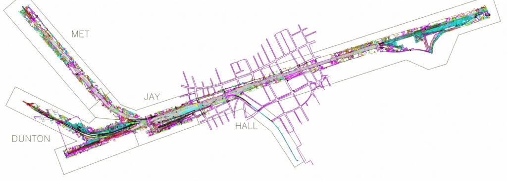 - Coordinating proposed utility infrastructure across all disciplines (High Tension Signal Power, Drainage, Signal Cables, Communications Fiber Optic, DC Positive and DC Negative) and planning utility relocations for existing infrastructure.